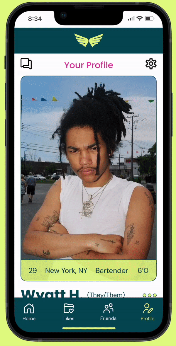 Meet Amy and Wyatt, two new WingMate users with distinct motivations. Amy recently moved to New York and is eager to build new connections, romantic and platonic. She’s excited to explore the city with locals who can introduce her to hidden gems and authentic experiences. Wyatt, a bartender and seasoned dater, joined WingMate to explore his sexuality. Confident in his extensive network, he sees WingMate as a way to meet new people through trusted connections. Knowing why users like Amy and Wyatt join WingMate helped me shape the app to meet different needs.